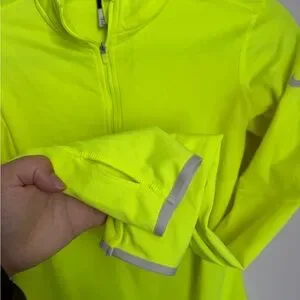 Long sleeves, Nike logo on the sleeve, grey reflective cuffs and logo