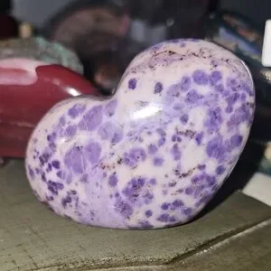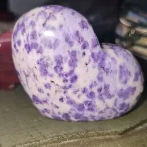 Beautiful heart-shaped stone purple jade. Perfect for decor or gifting. self standing