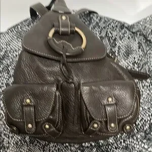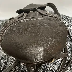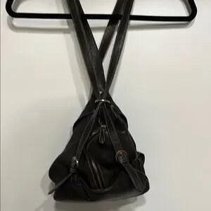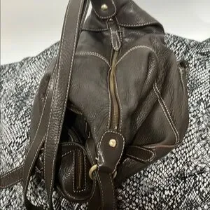 JONES NEW YORK Sling Double DOUBLE Pocket Dark Brown Leather Backpack Bucket Bag