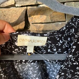 This relaxed blouse by Cynthia Rowley features a chic black and white design with ruffled accents and 3/4 sleeves. The light, flowy fabric offers a comfortable fit, making it a versatile addition to any wardrobe. You can see where I pulled the tag off never worn