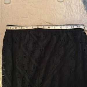 NWT This sophisticated black lace maxi skirt from Studio West features a stylish trumpet silhouette elastic waist with a ruffled hem, perfect for cocktail events or a night out. Its elegant design and flowing length make it a versatile addition to any wardrobe, offering a chic and polished look.