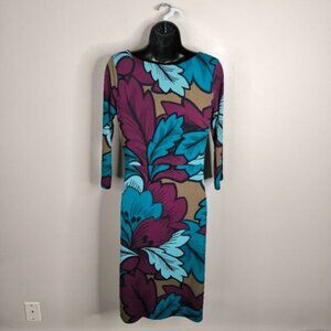 Talbots Jersey Stretch Feminine Floral Tropical Print Faux Wrap Sheath Dress S