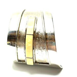 Vintage 1960s J. Woolsey Sterling Silver Cuff Bracelet with Bone Inlay — GUC