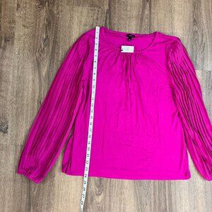 NEW Talbots Pleated Sleeve Crewneck Top Magenta Pink Sz L