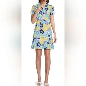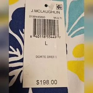 NWT J. McLaughlin Dorte Dress: Multi Hibiscus Print: Size- Large: UPF 50+