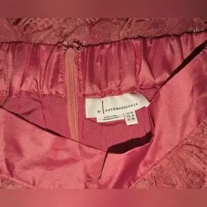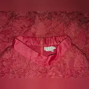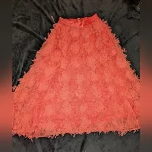 Lightly lined, with beautiful sheer lacy ruffles overlay, w/a zipper & elastic in waistband.