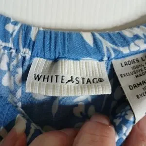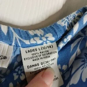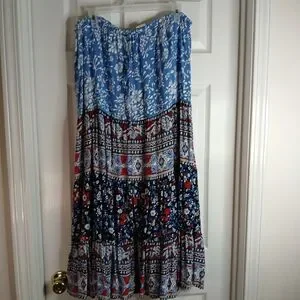 Embrace a relaxed vibe with this White Stag broomstick skirt, featuring a drawstring waistband (missing beads on 1 end) for comfort and a tiered design that flows beautifully. The skirt showcases a harmonious blend of blue and red hues, perfect for casual outings or resort wear. Its lightweight fabric ensures a breezy feel, making it an ideal choice for warm weather adventures.