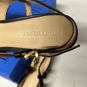 J. McLaughlin Agyness Brown Heels with Horsebit Detail. Adjustable strap. Mid block heel. Size 8. Comes with box and individual dust bags. Minor wear on toe of right shoe-see image. Hardware has zero scratches.