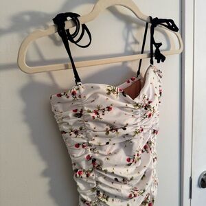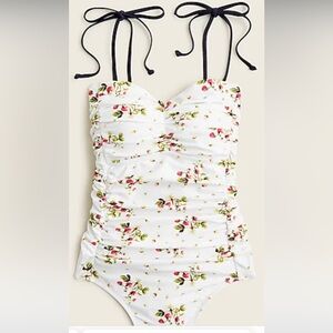 J.Crew Ruched Removable Straps Strawberry Print Swimsuit