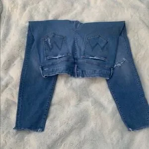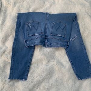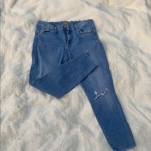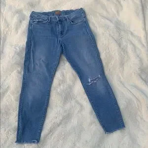 MOTHER Blue Skinny Jeans Distressed Detail