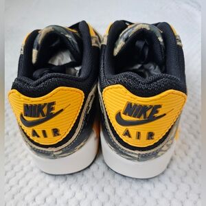 Beyond its aesthetics, the Nike Air Max 90 Camo University Gold is a testament to Nike's commitment to quality and innovation. The shoe is crafted with premium materials, ensuring durability and comfort for everyday wear. The use of mesh and synthetic overlays in its construction provides breathability and support, making it a practical choice for both style and functionality. This model continues the Air Max heritage of merging sport and culture, appealing to a wide range of audiences from casual wearers to dedicated collec