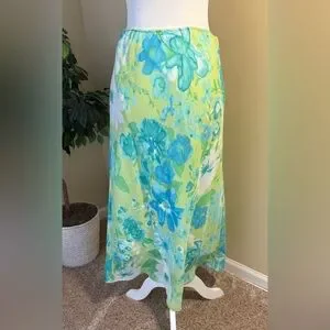 EUC Skirt: Large Floral Pattern on Soft Lime Green, Pull-On, Vintage c. 1990s