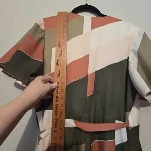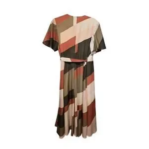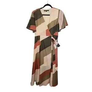 Hutch Anthropologie Abstract Wrap Maxi Dress LG Green Tan Geometric Flowy Lined