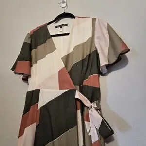 Hutch Anthropologie Abstract Wrap Maxi Dress Womens LG Green Geometric Flowy