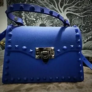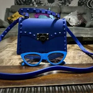 Stylish blue studded women's bag and blue sunglasses,perfect for any occasion. Features a sleek design with a secure clasp. Ideal for adding a pop of color to your outfit. This combo. Is perfect, all new with out tag , one time used