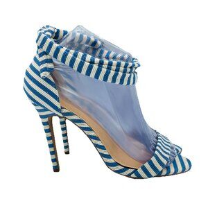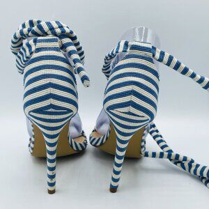 Liliana Heels Womens Size 6.5 Blue White Striped Strappy Stiletto High Shoes