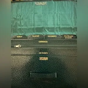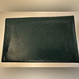 Absolutely Gorgeous Luxurious Envelope Clutch green leather organizer with labeled compartments.