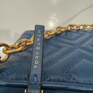 Tory Burch mini symphony blue Fleming Quilted Blue and Gold Crossbody Bag