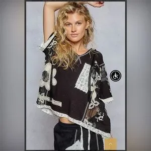 POL Black Patchwork Top with Crochet design