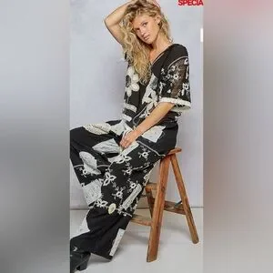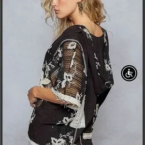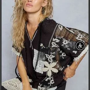 POL Black & White patchwork Hoodie top with floral and crochet pattern