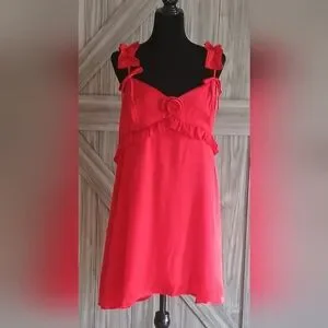 Romantic red slip dress with rosette and bow accents. This dress is new with tag. However, it does show some minor wear, probably from someone trying it on, which is reflected in the price. (Size L)