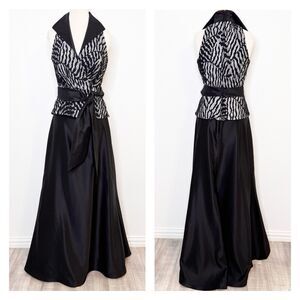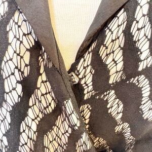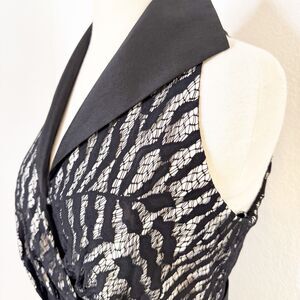 Tadashi Collection Sleeveless Top Sz 8 Faux Wrap High Collar Lace Black Glam