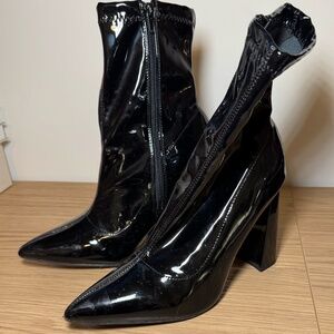 Edgy and stylish, these black latex booties from Bamboo in size 10 are in used condition. Perfect for adding a bold statement to your outfit, they combine a sleek design with a touch of attitude.