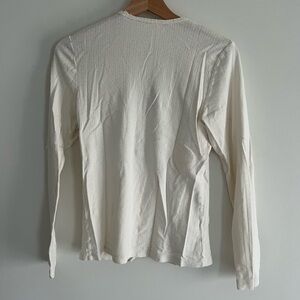 This cream button down shirt from Doen features a sophisticated mandarin collar and long sleeves, offering a fitted silhouette that exudes elegance. Crafted with attention to detail, it combines style and comfort, making it a versatile addition to any wardrobe.