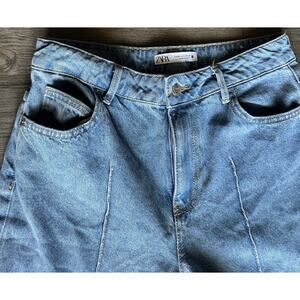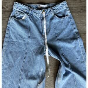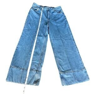 Zara Logo High-Waisted Cropped Wide Leg Jean Sz 6 Blue For Womens Cotton 100%