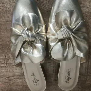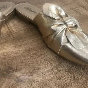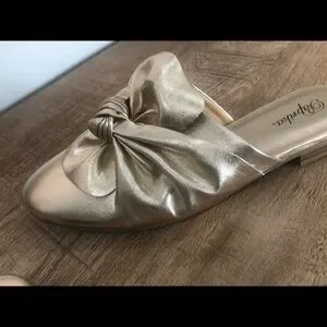 Ladies get excited for the mullet of shoes! Business in the front, party in the back. This cute bow loafer in gold is slip on, OH YEA!!