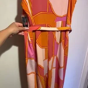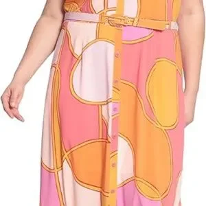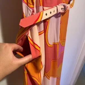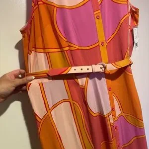 Super cool, mod-style, midi-length, belted dress with button-down front and pockets!