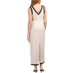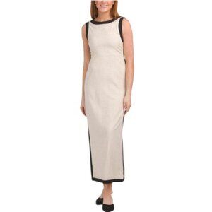 WHITE CLOSET Linen Blend Sleeveless Maxi Dress With Contrast Trim