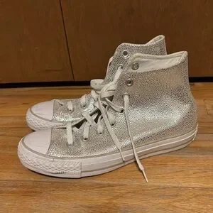 LIKE NEW! Converse Silver High-Top Sneakers