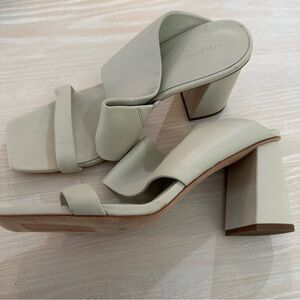 NEW Vince Nessia Sandal Block Heel Off White Leather Women's 11 MSRP $325