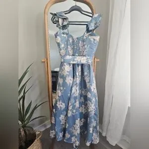 V. Chapman VERA- Floral Blue Sleeveless Dress