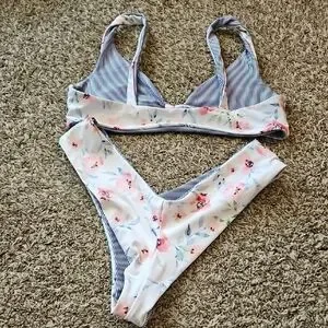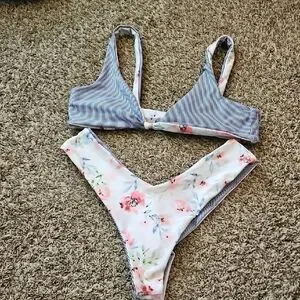 Stylish bikini set by Skatie. Features a striped top and floral bottom. Perfect for beach days. Reversible and like new. Floral or stripes depending on your mood. Super cute.