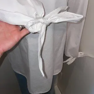 JOA Los Angeles long sleeve top tie detail at wrist cotton white medium