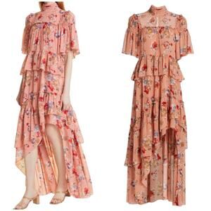 Cinq á Sept NWOT Jamie Floral Georgette Maxi Dress Size 6 Tiered Ruffle Chiffon