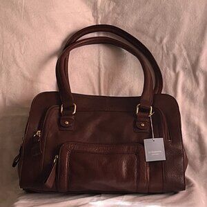 NWT Liz Claiborne Shoulder Caramel Brown Leather Satchel Purses