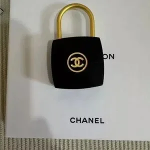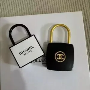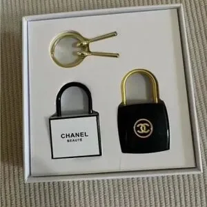 Elegant CHANEL accessory set. Includes black and gold lock designs. Perfect for adding a touch of luxury.