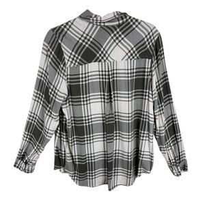 Excellent preowned condition. Green/cream plaid long sleeve collared lightweight soft button up flannel shirt. Open pocket on left chest. No material tag, likely rayon. Approx. measurements: Shoulder to hem 27", pit to pit 23", sleeve from neck to sleeve hem 31". Size L.