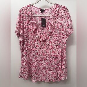 NWT Torrid Georgette Flutter V neck blouse “pretty Jacobien ditsy whisper white”