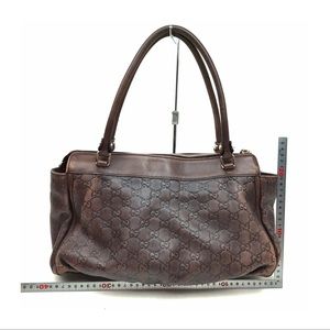 Elegant Gucci shoulder bag. Rich brown leather. Iconic GG pattern. Perfect for any occasion.