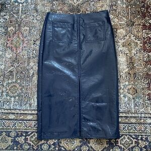New with tags navy pencil skirt with crinkled sheen, light weight, back zip