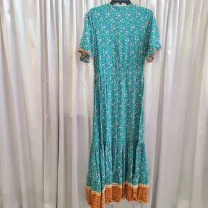 R. Vivimos Teal and Orange Maxi Dress Size Medium