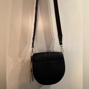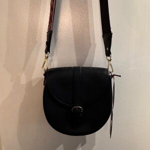 Stylish black crossbody bag featuring a vibrant patterned strap. Perfect for adding a touch of coolness to any outfit. Can switch out to plain black strap. New with tags