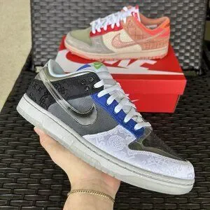 This Nike Dunk SP Low in collaboration with CLOT features a colorful and eye-catching design with a low top shoe shaft style. The sneaker is made with breathable and limited edition materials, perfect for any athletic or casual occasion. The shoe is available in size 10 for the US, 9 for the UK, and 44 for the EU. The style code for this Nike Dunk is FN0316-999.
