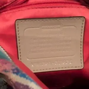 VERY gently-used (only flaw I can find is on the hang tag). Fun, branded pattern. Interior and exterior are otherwise flawless.