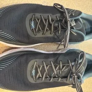 These shoes are in excellent condition. He may have worn these twice before moving on. Size 12 in men’s. I cleaned the white portion, so pictures may show a few places where the fabric is still wet. The shoes are not discolored or stained.