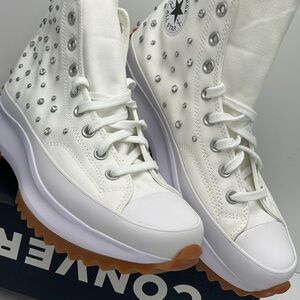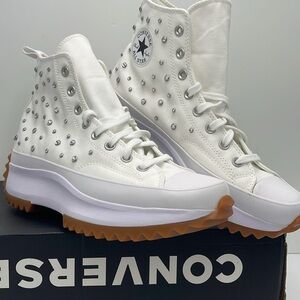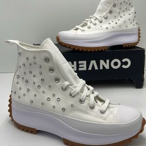New in the box no lid authentic Converse Men’s White Silver High-Top Platform Sneakers A10289C RUN STAR HIKE HI WHITE/BLACK/WHITE